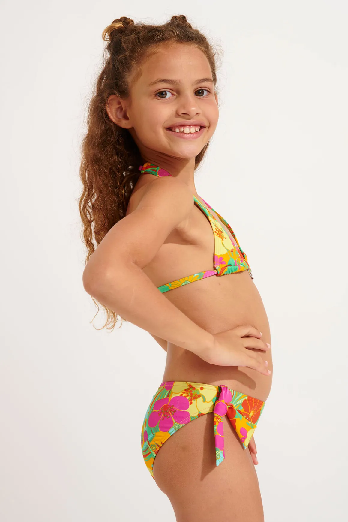 | Details | • Girls’ bikini • Floral print • Side bows • Back fastening |