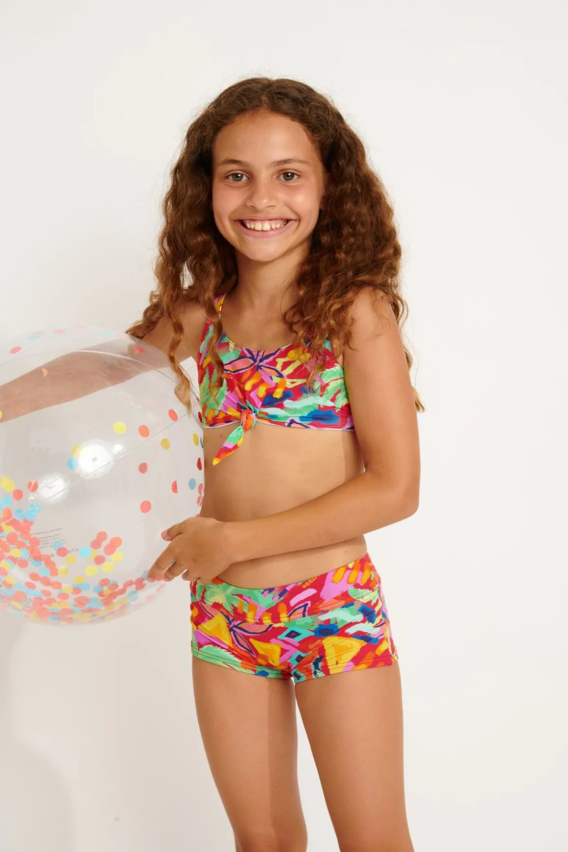 | Details | • Two-piece swimsuit for little girl • Bra top and shorty bottom • Colorful print |