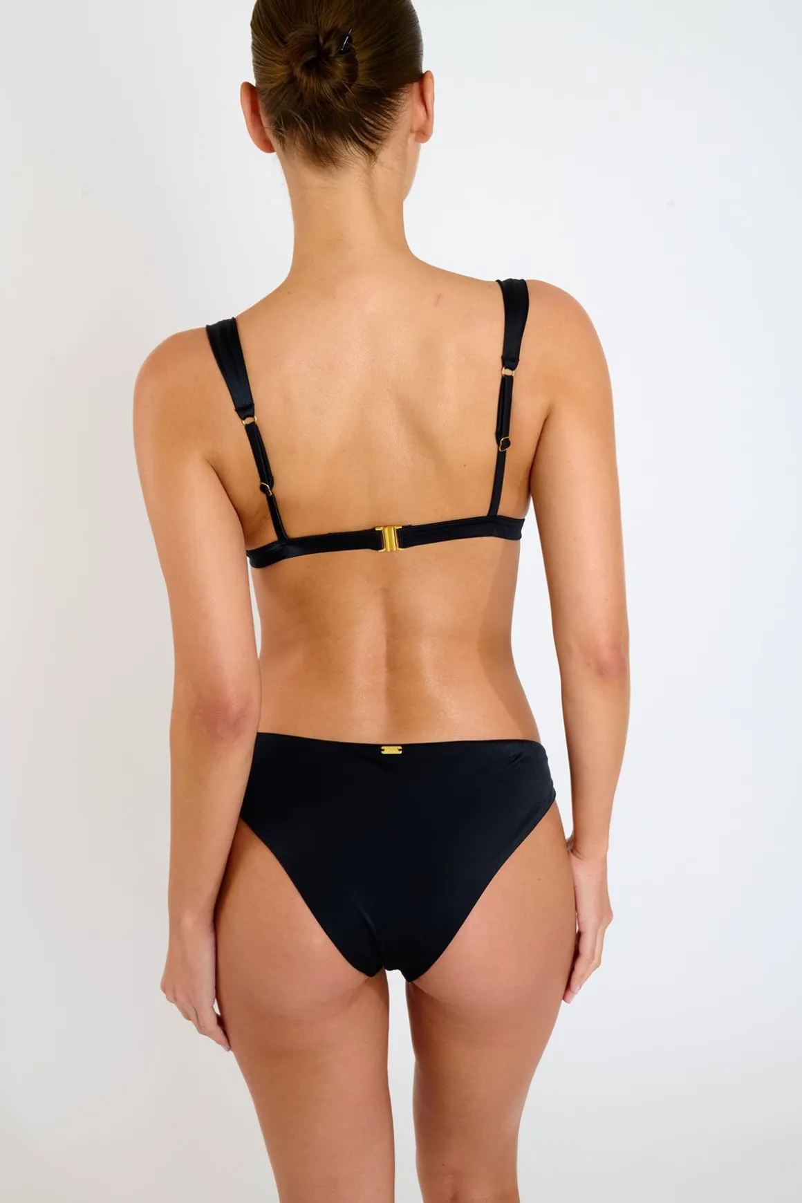 | Description | AIMLO CORALISS black bikini top from the Banana Moon Couture collection. Elegant and feminine, this satin burgundy triangle top is enhanced with a golden shell to elevate your look by the water. The straight straps and back tie provide support and comfort. Pair it with the AGUA CORALISS bottom for a complete set. |