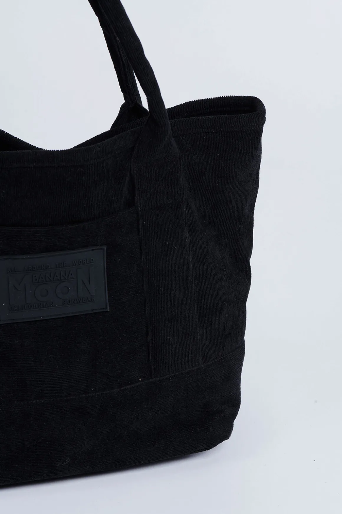 | Details | Black tote bag • “Banana Moon” inscription • Ribbed material with a velvety feel • Internal magnetic closure • Inside pockets • Lined • 24cm x 36cm (9 in. x 14 in.) |