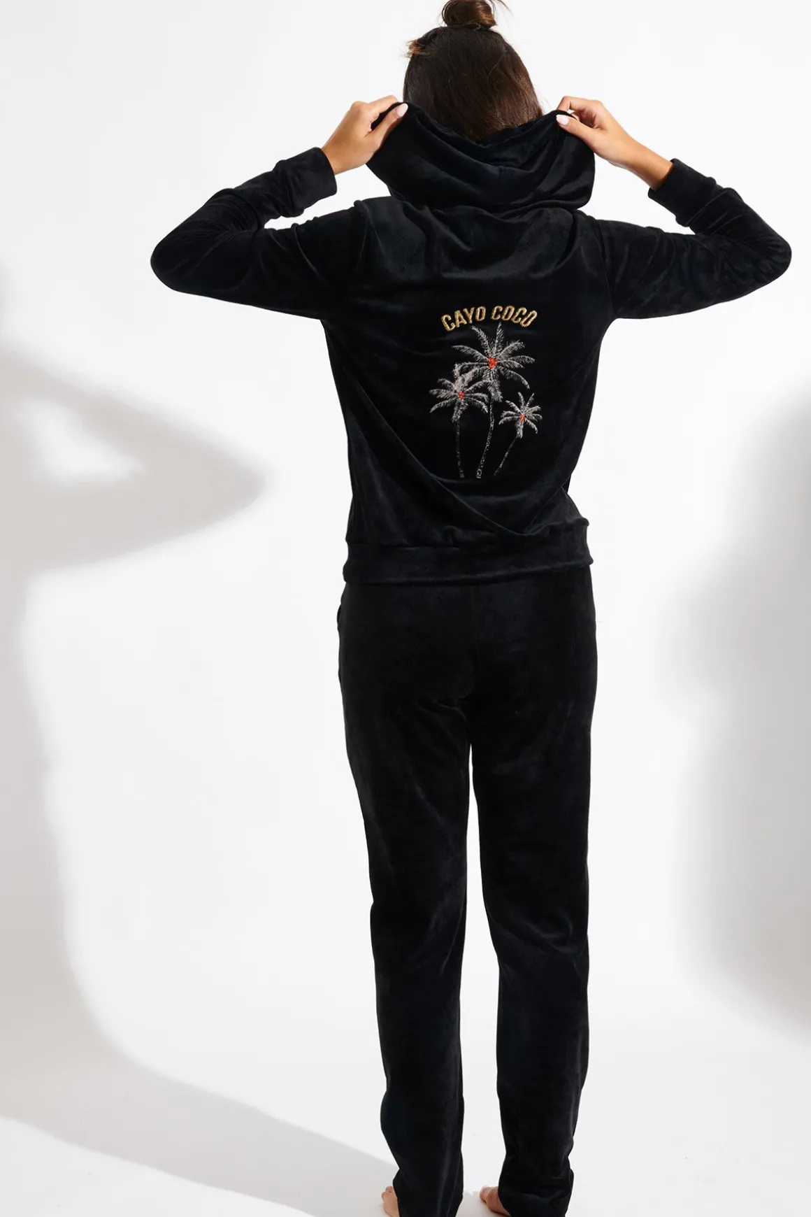 | Details | • Zipped Hooded Jacket • Velvet • Hood • Pockets • Zipped closure • “Cayo Coco” embroidery and palm trees |