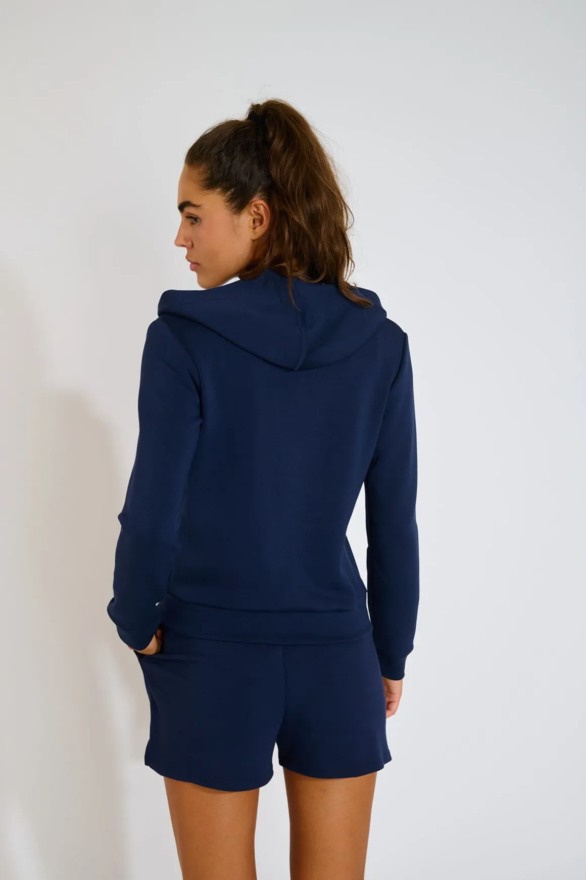 | Description | RESCO BAYJOY Navy Blue Zip-Up Hoodie. Discover our zip-up hoodie, perfect for both sporty looks and cozy lounging. Its soft, stretchy material provides comfort and warmth to face the drop in temperature. It is perfect to wear after a workout to stay warm. |