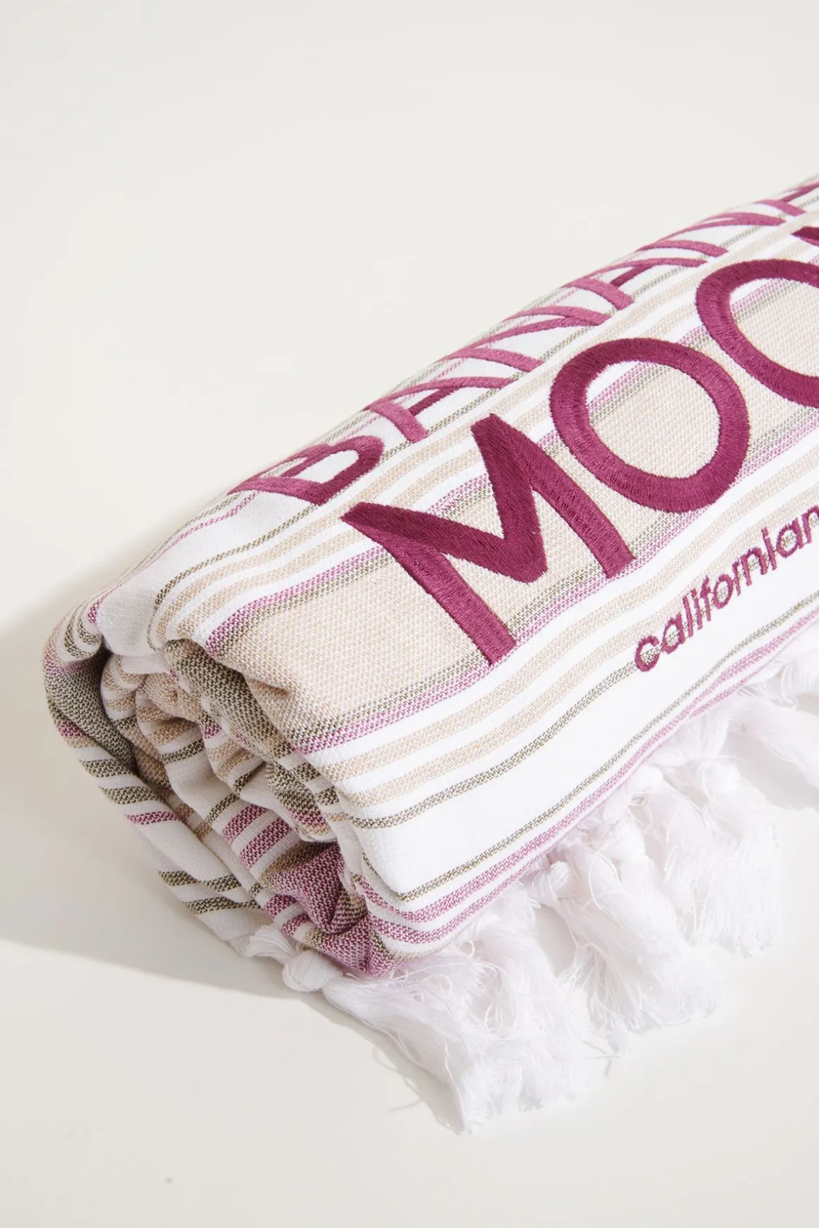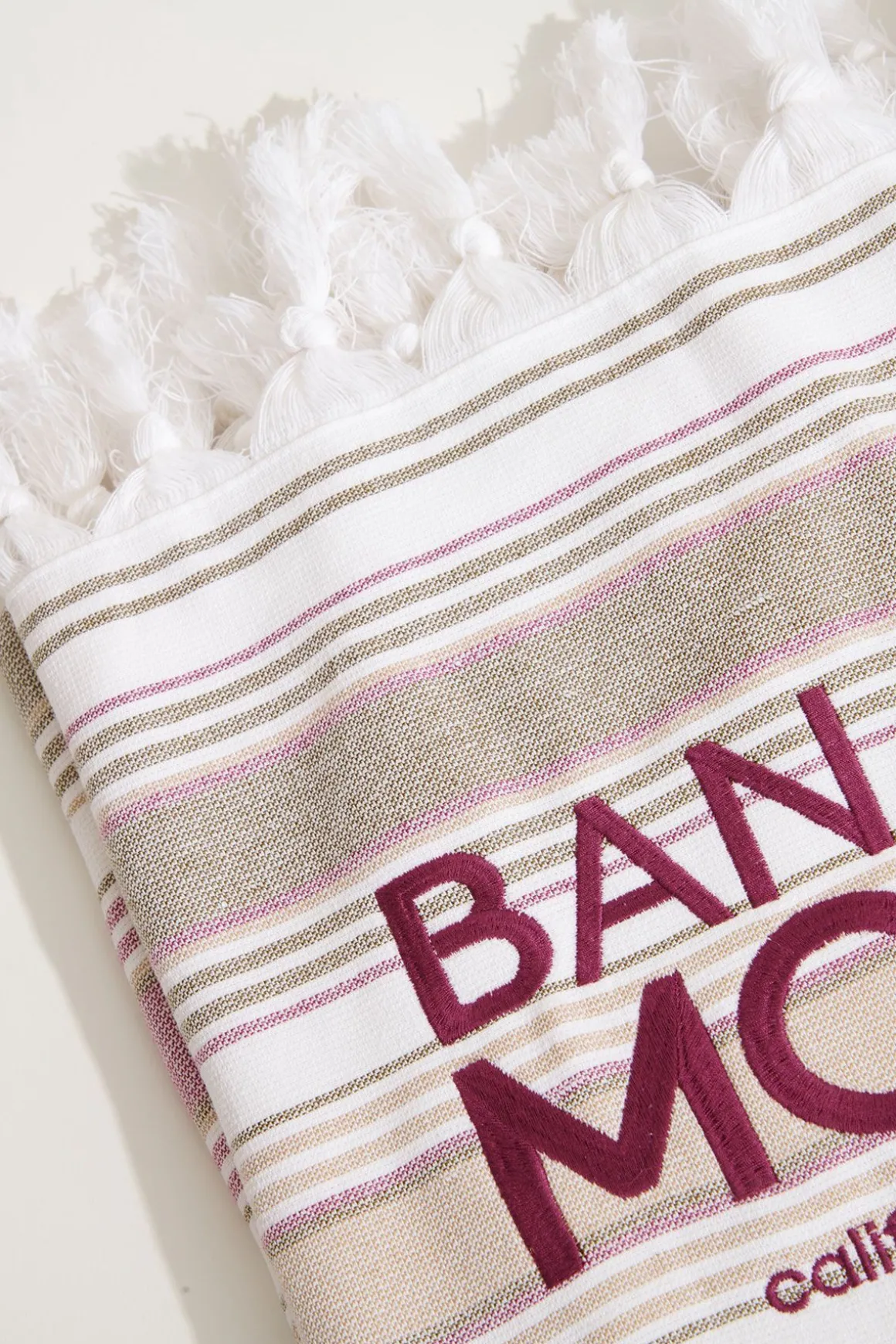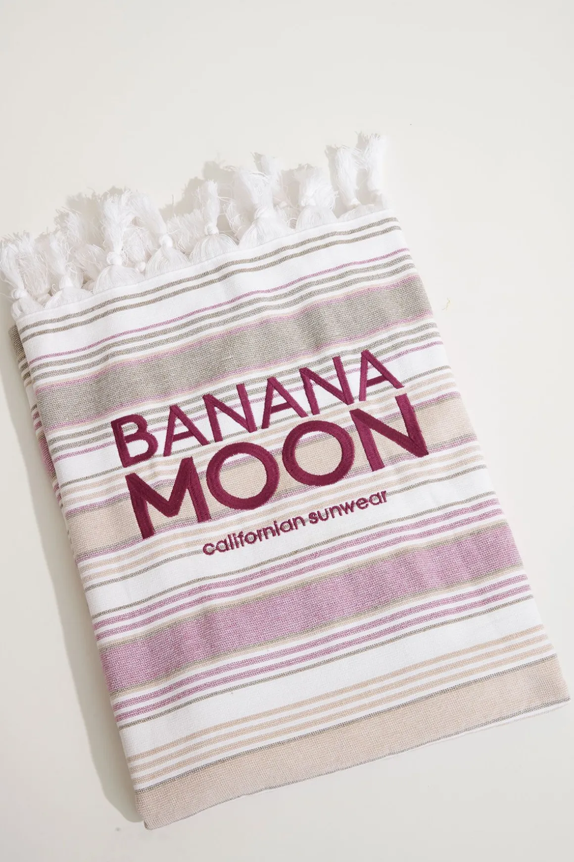 | Details | • 100% cotton Fouta beach towel • Terry towelling back • Multicoloured stripes • Fringed edges • “Banana Moon” embroidery • Dimensions: 90 x 170 cm |