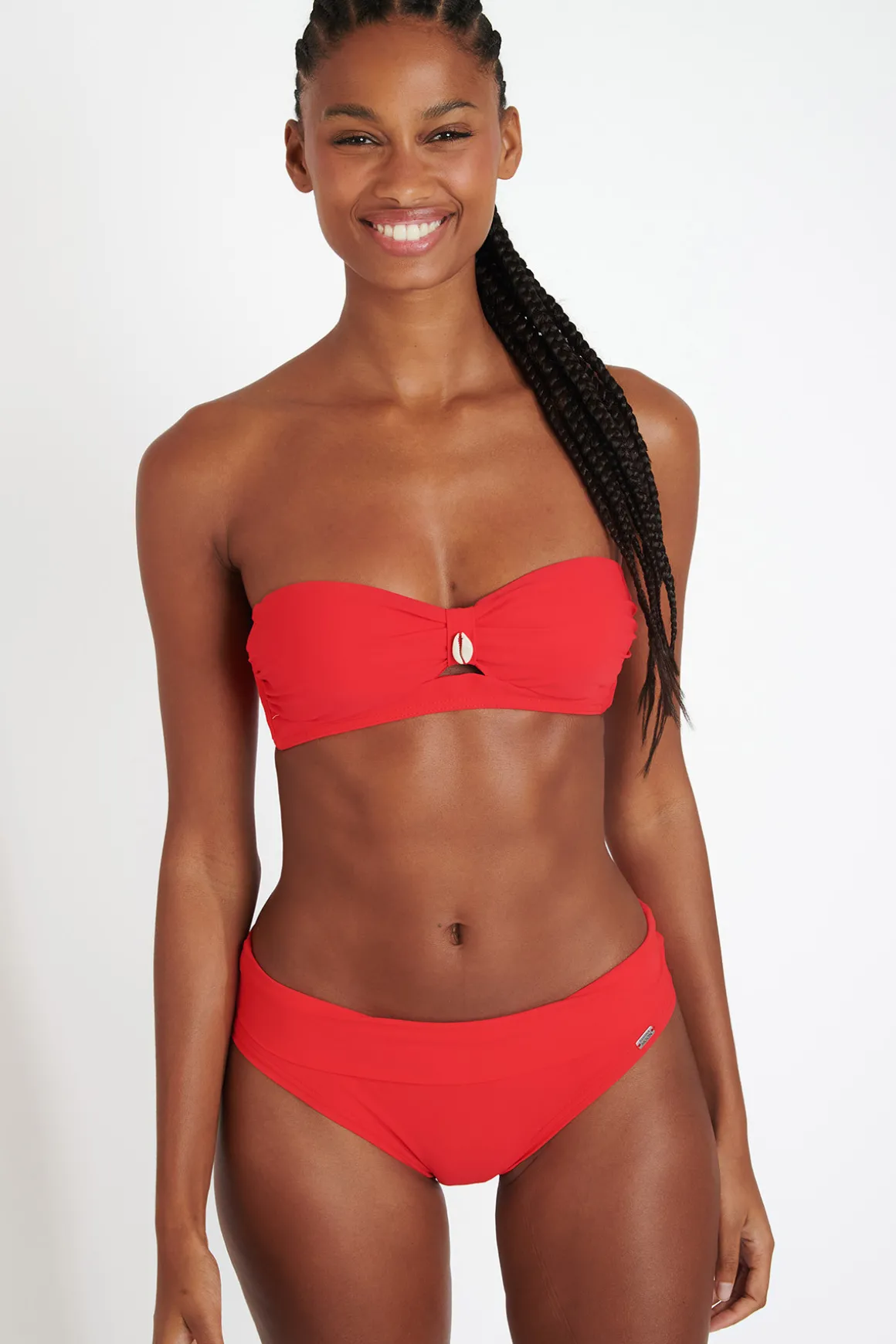 | Description | KENTEO SPRING red bandeau bikini top. With its bandeau cut and seashell detail at the crotch, it’s comfortable and sexy, ideal for your beach afternoons. |