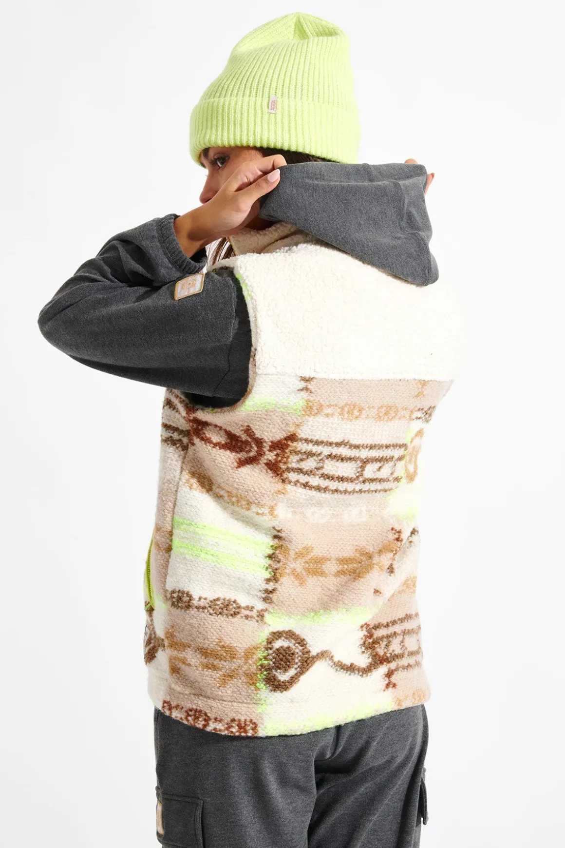 | Description | DEERVALLEY FISSA ecru sleeveless jacket from the Banana Moon winter collection. Discover our sleeveless zip-up fleece jacket with a retro motif. It’s made from 76% wool, and guarantees warmth and comfort. The sleeveless design offers freedom of movement, making it perfect for layering over your casual outfits for a complete look. |