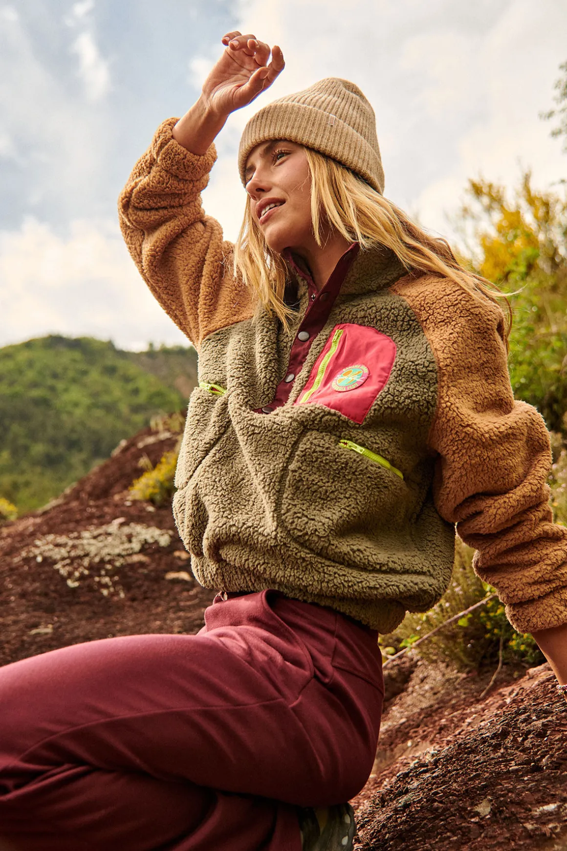 | Description | BREW SKIWAX Khaki Fleece with Nylon Accents. Discover our sherpa fleece, perfect for keeping you warm after hitting the slopes. With a retro look and flashes of bright pink and yellow, this sweatshirt will become your essential piece for the season. |