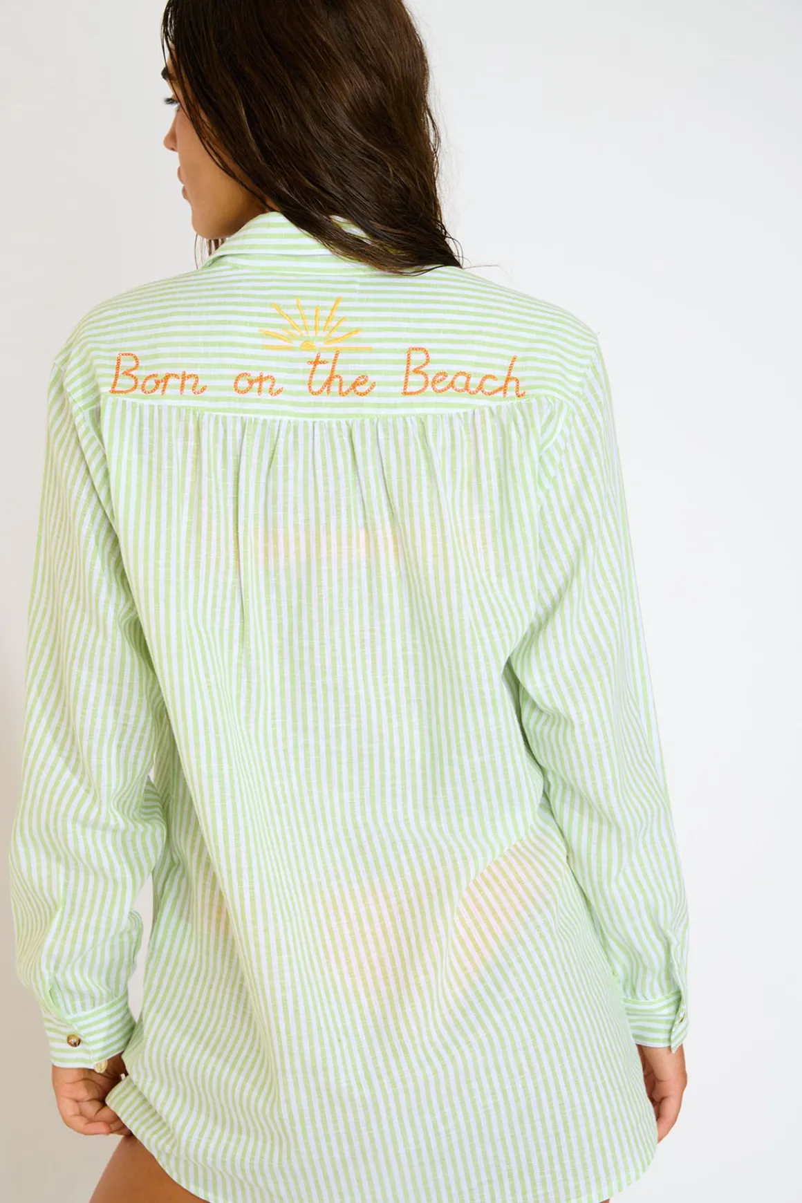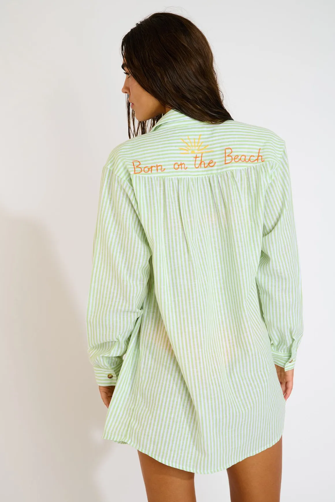 | Description | KNIGHT VARKALA women’s aniseed green striped shirt. With its fine, summery embroidery on the back and front, it’s perfect for slipping over your favourite Banana Moon swimsuit or with jeans for your everyday look! |