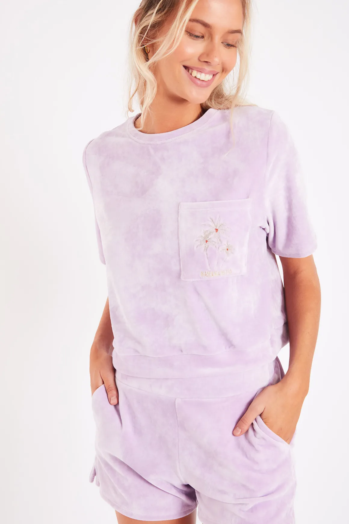 | Description | Scotty Sealake women’s purple velour shorts from the Banana Moon collection. The perfect homewear piece for cozy winter evenings. The T-shirt pocket features an embroidered palm tree to add a tropical touch of warmth to the cold winter months. |