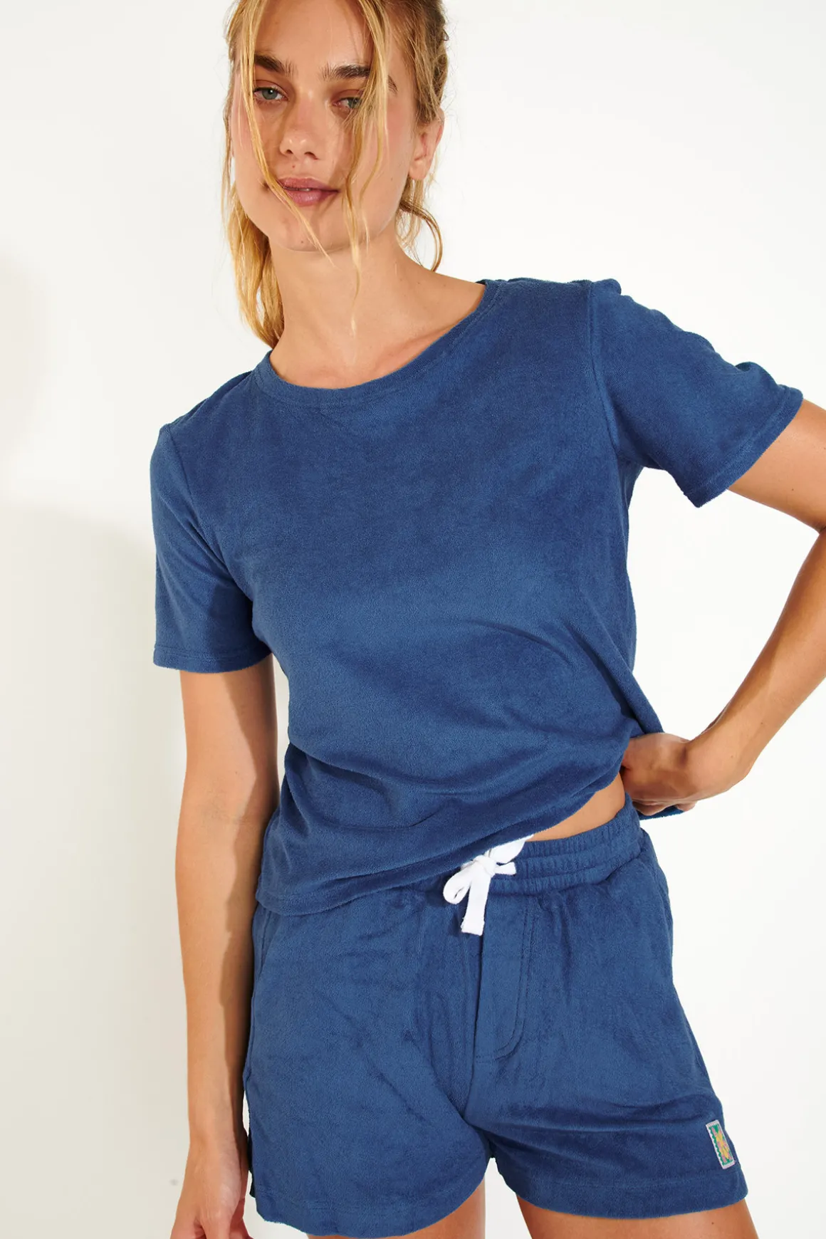 | Details | • Short-sleeved T-shirt • Towelling fabric • Retro logo |