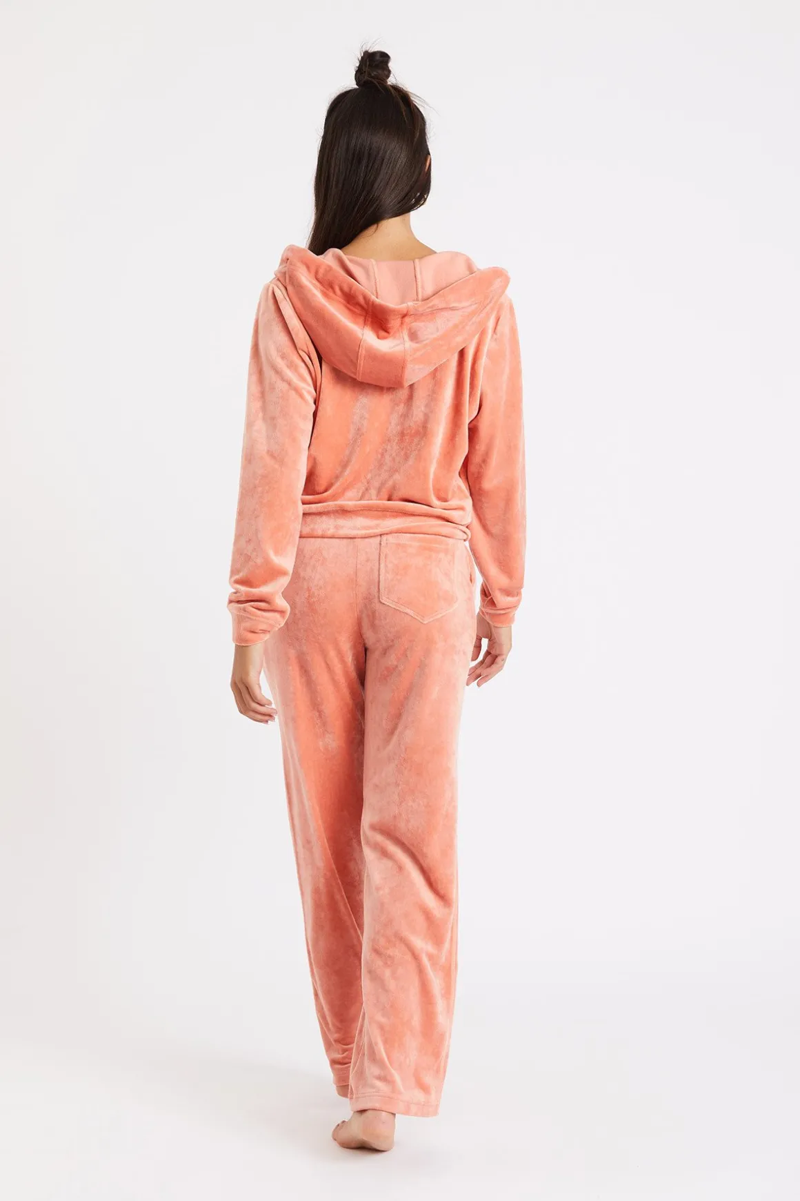 | Details | • Women’s jogger pants • Apricot orange • Velour • Elastic waistband • 2 pockets |