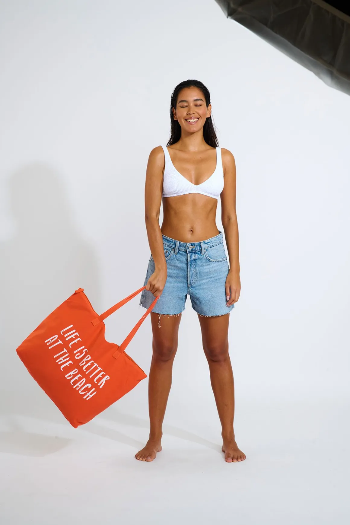 | Details | • Cotton beach bag • Orange • White screen-prints • Zip fastening, tone on tone • Dimensions: 58 x 38cm |