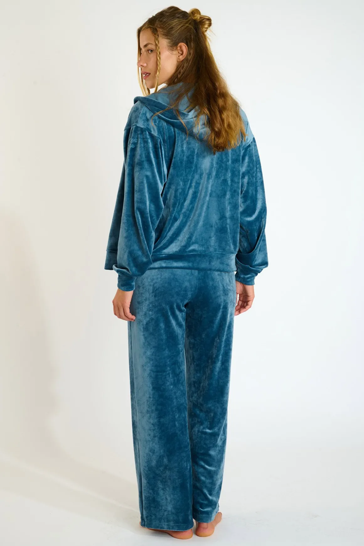 | Description | IVY SEACHIC Blue Velour zipped hooded jacket. Discover our zip-up velour hoodie for a chic yet casual look. Its oversized fit with dropped shoulders provides freedom of movement and optimal comfort. Made from soft and comfortable fabric, it’s your perfect partner for a cozy night at home or a stroll around the city. |