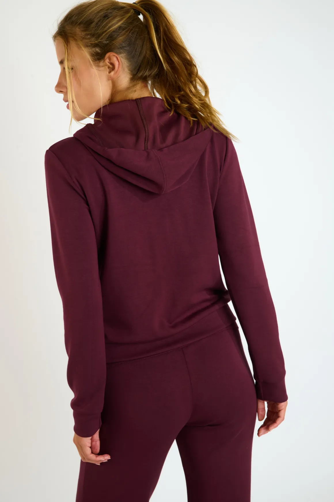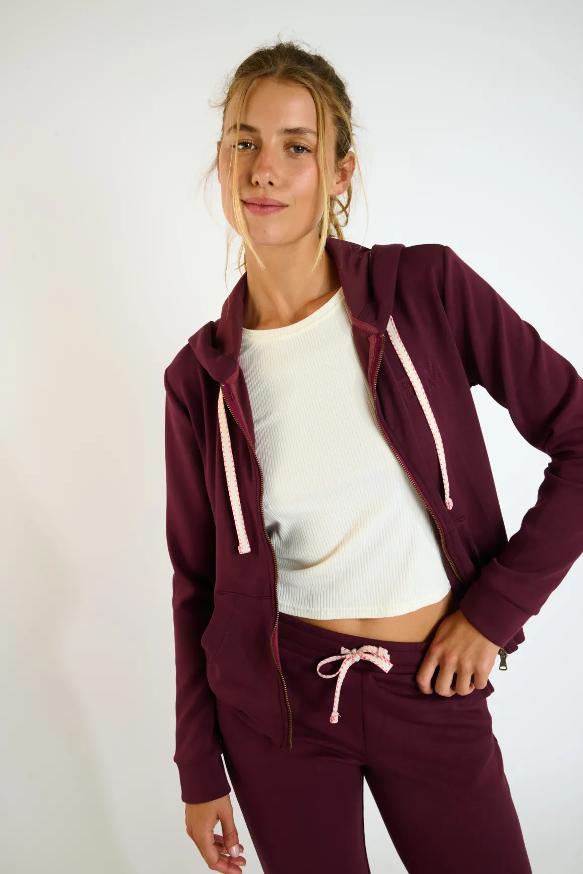 | Description | RESCO BAYJOY Burgundy Zip-Up Hoodie. Discover our zip-up hoodie, perfect for both sporty looks and cozy lounging. Its soft, stretchy material provides comfort and warmth to face the drop in temperature. It is perfect to wear after a workout to stay warm. |