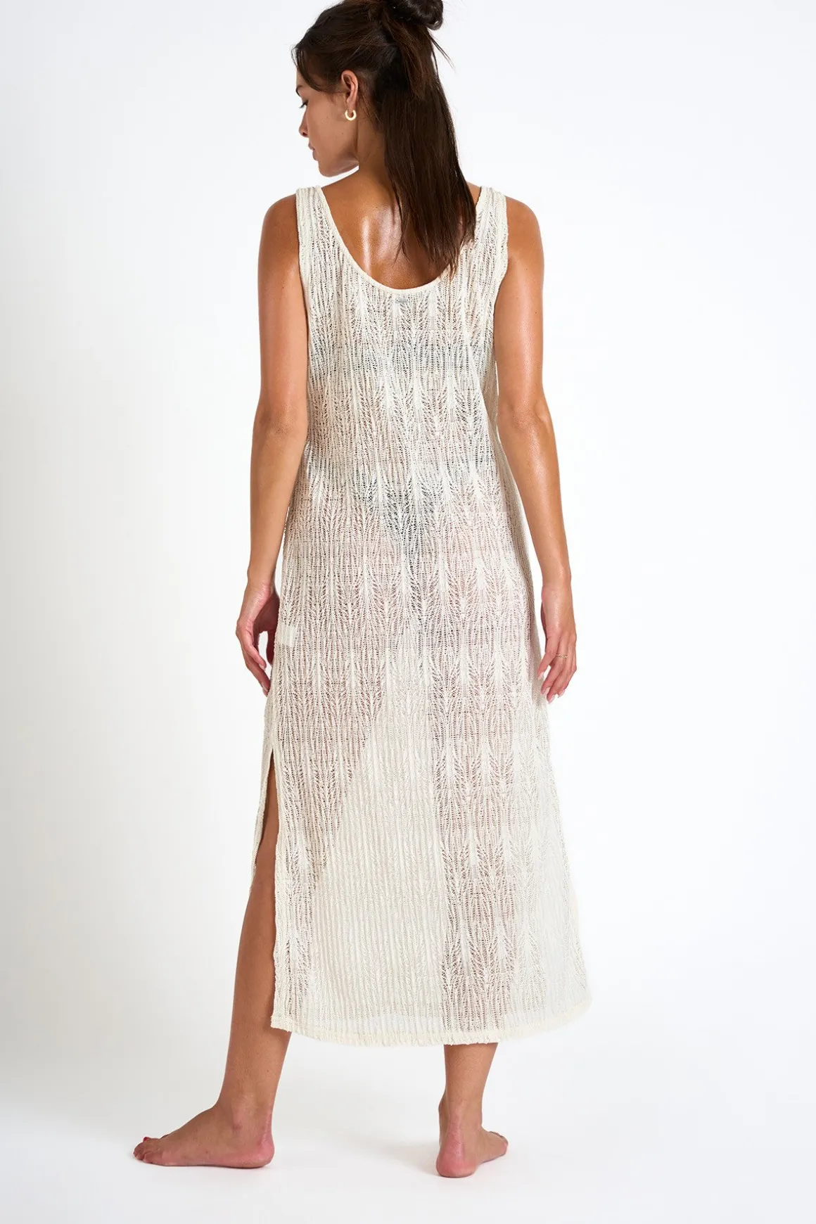 | Details | • Beach dress • Open weave fabric • V-neck • Split leg |