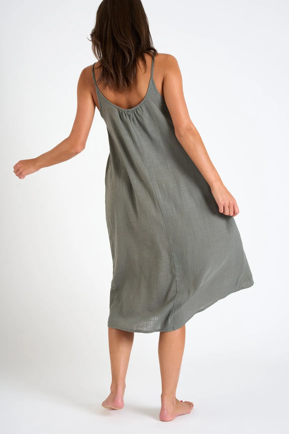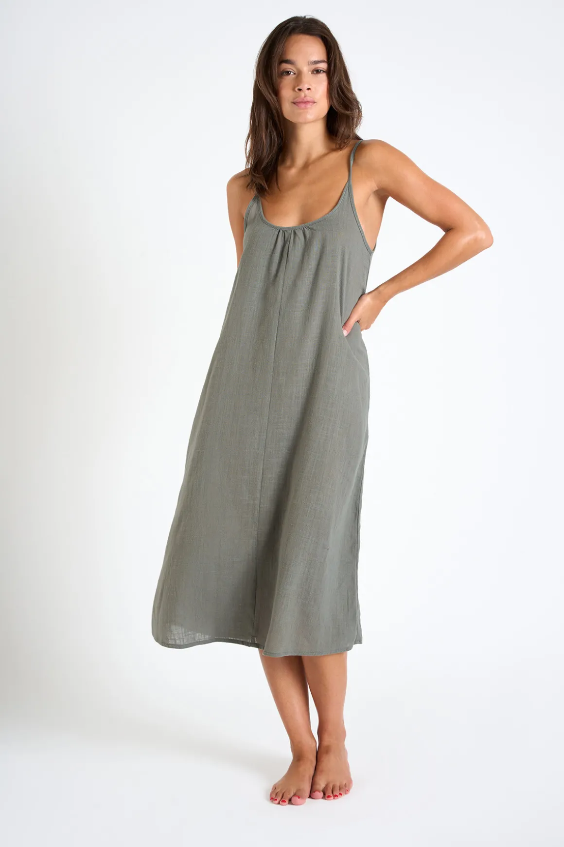 | Description | CAPUCINE CALYPSO khaki maxi dress. It’s a basic wardrobe essential. With its classic cut, this dress can be worn for a wide range of occasions and will always provide optimum comfort. |
