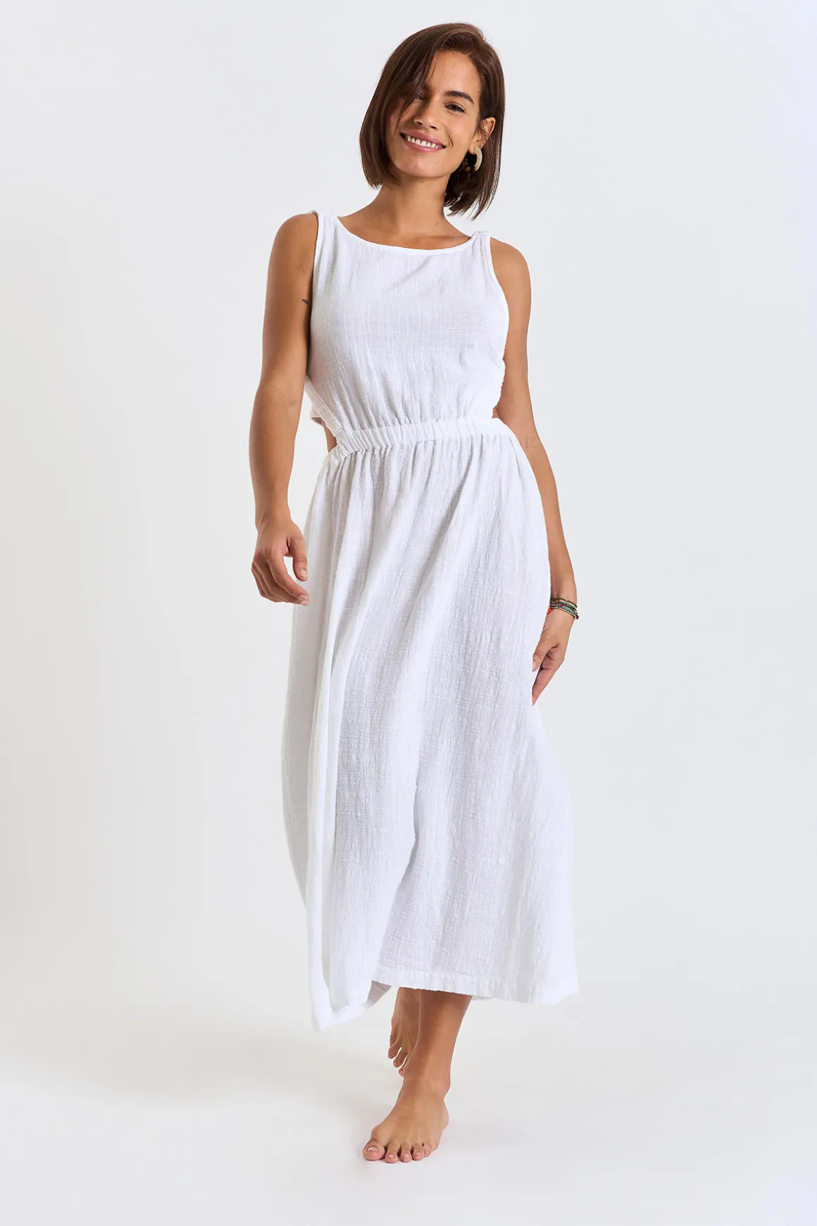| Details | • Long dress • Straight collar • Open on the sides • Elastic opening • Perfect for the city or the beach |
