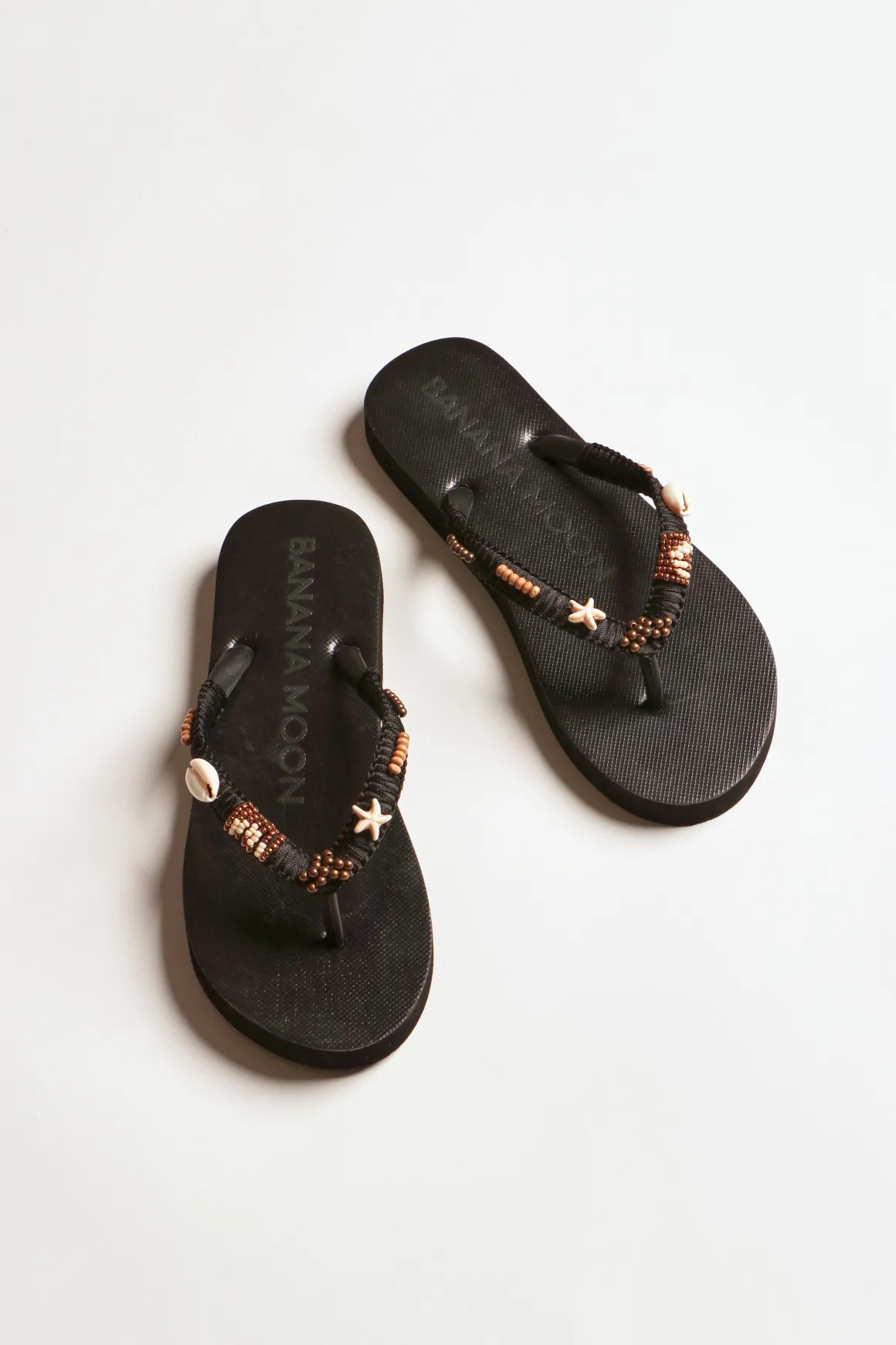 | Description | Lucero Tahuata black seashell flip-flops from the Banana Moon summer collection. These comfortable and trendy flip-flops are must-haves for all your summer looks! Choose from a variety of colors. |