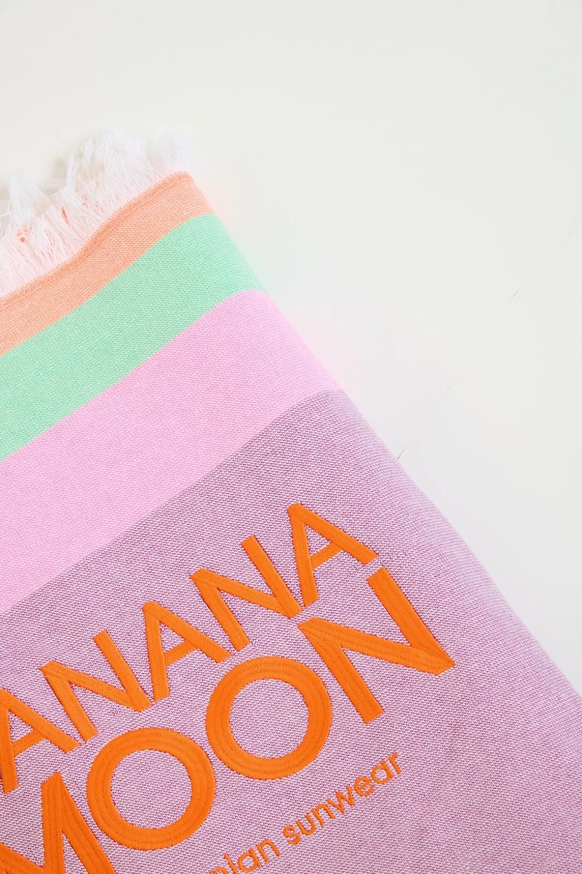 | Details | • Beach fouta • 100% cotton • Terry reverse side • Multicolored stripes • Fringed edges • “Banana Moon” embroidery • Dimensions: 90 x 170 cm |