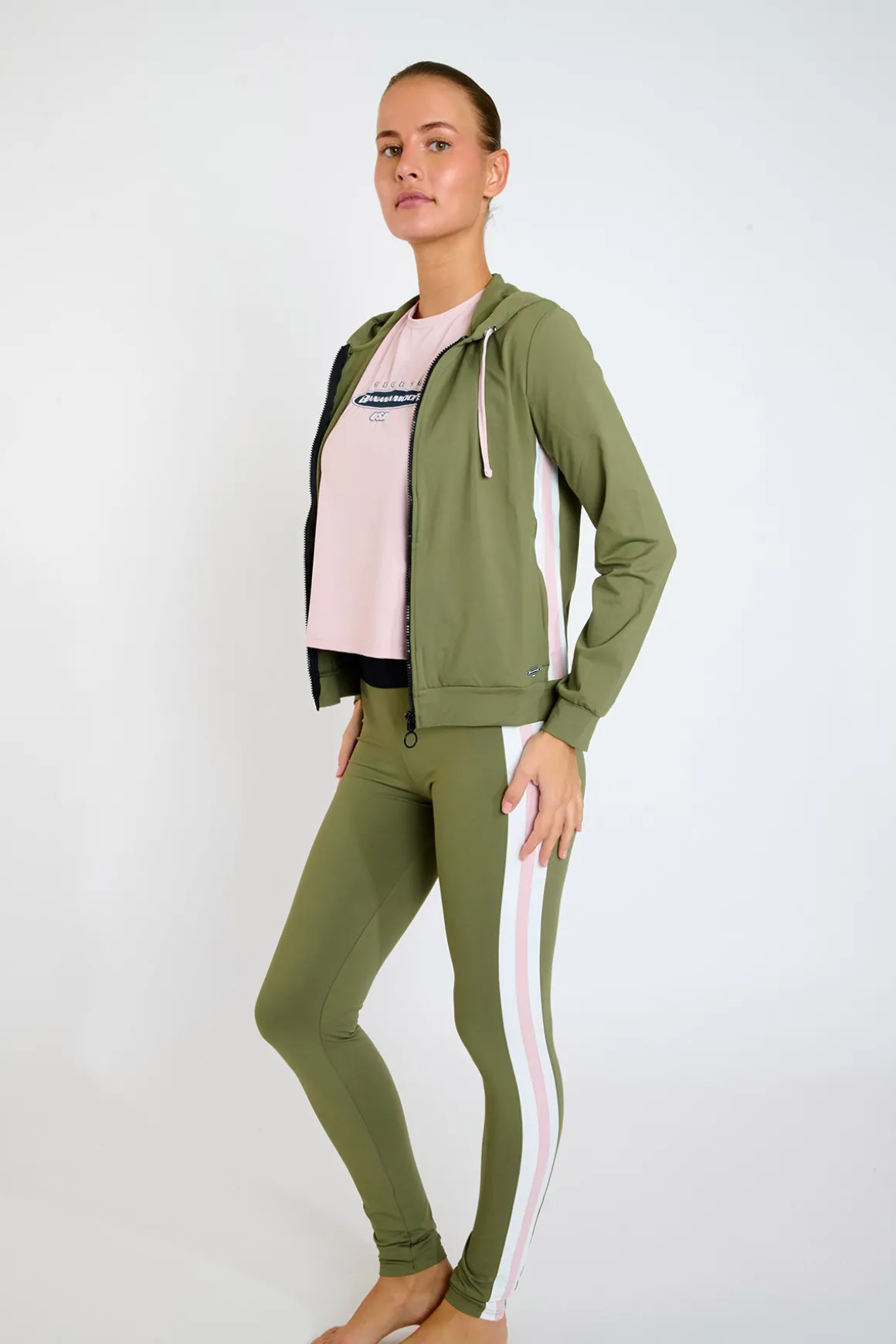 | Details | • Track jacket • Khaki • Pink and white side stripes • Zipper front • Breathable fabric • Our model is 5’8” and wears a size 36/S |