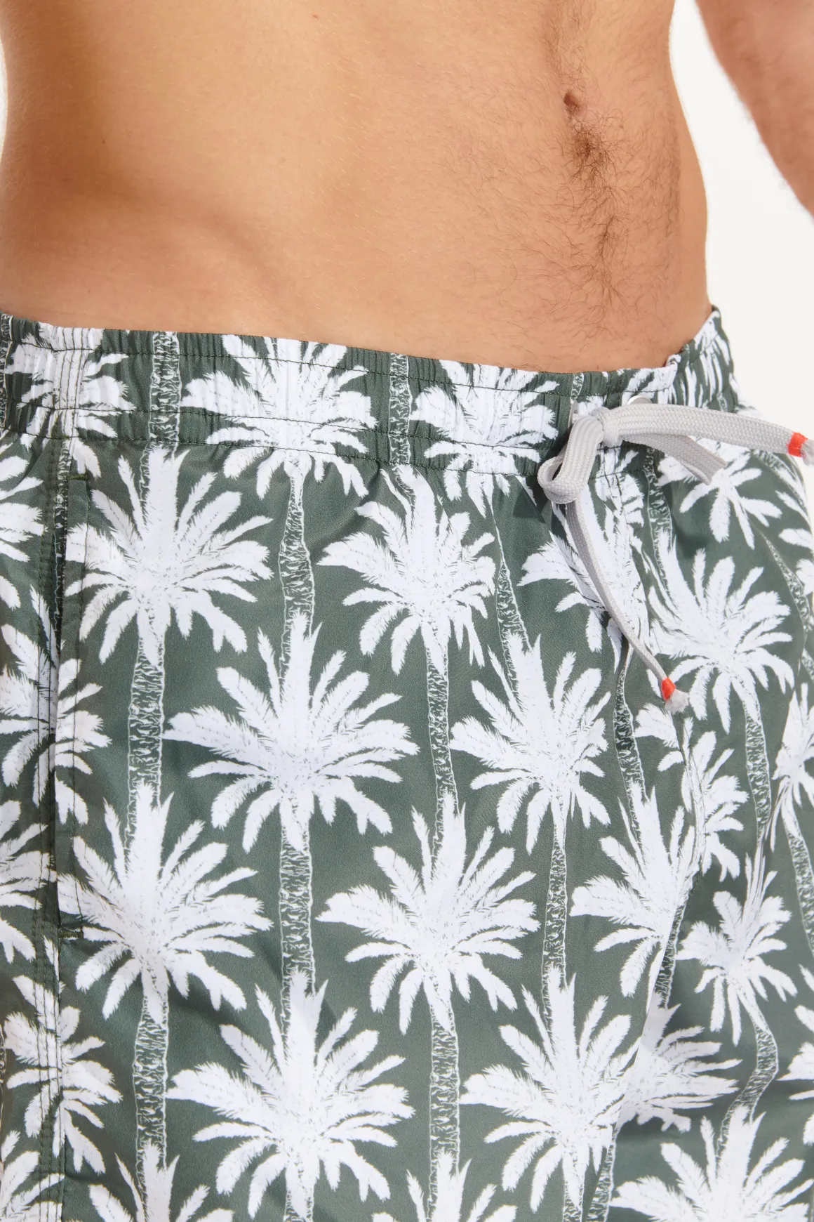 | Details | • Men’s swim shorts • Khaki • Palm tree print • Elasticated waistband and drawstring • 2 side pockets |