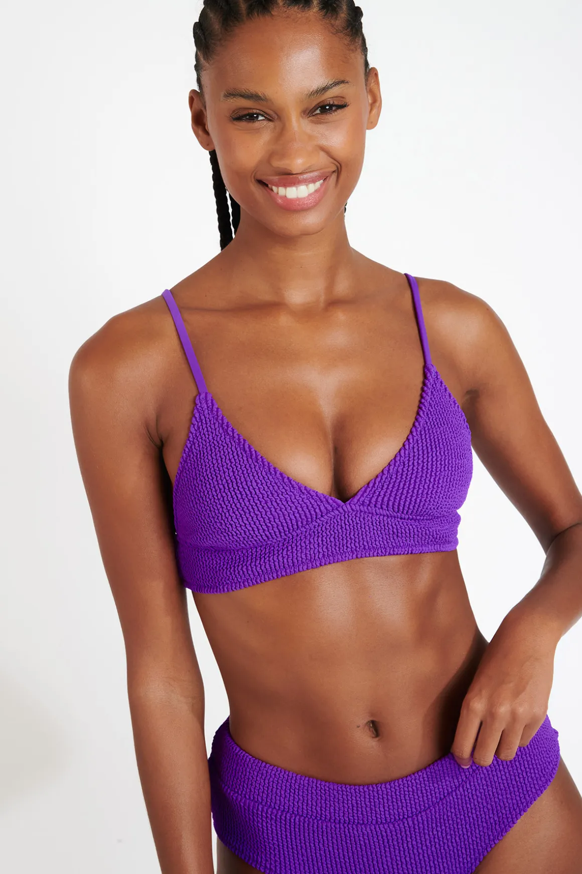 | Details | • Bikini top • Strong, stretchy textured fabric • Soft cups, no padding • Slip-on Triangle bikini top |