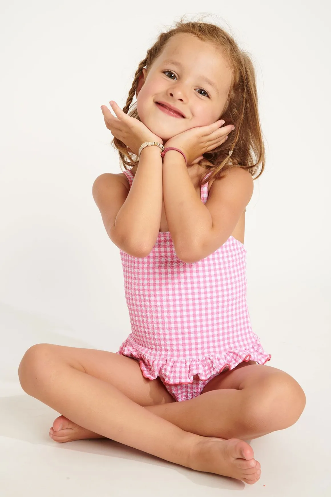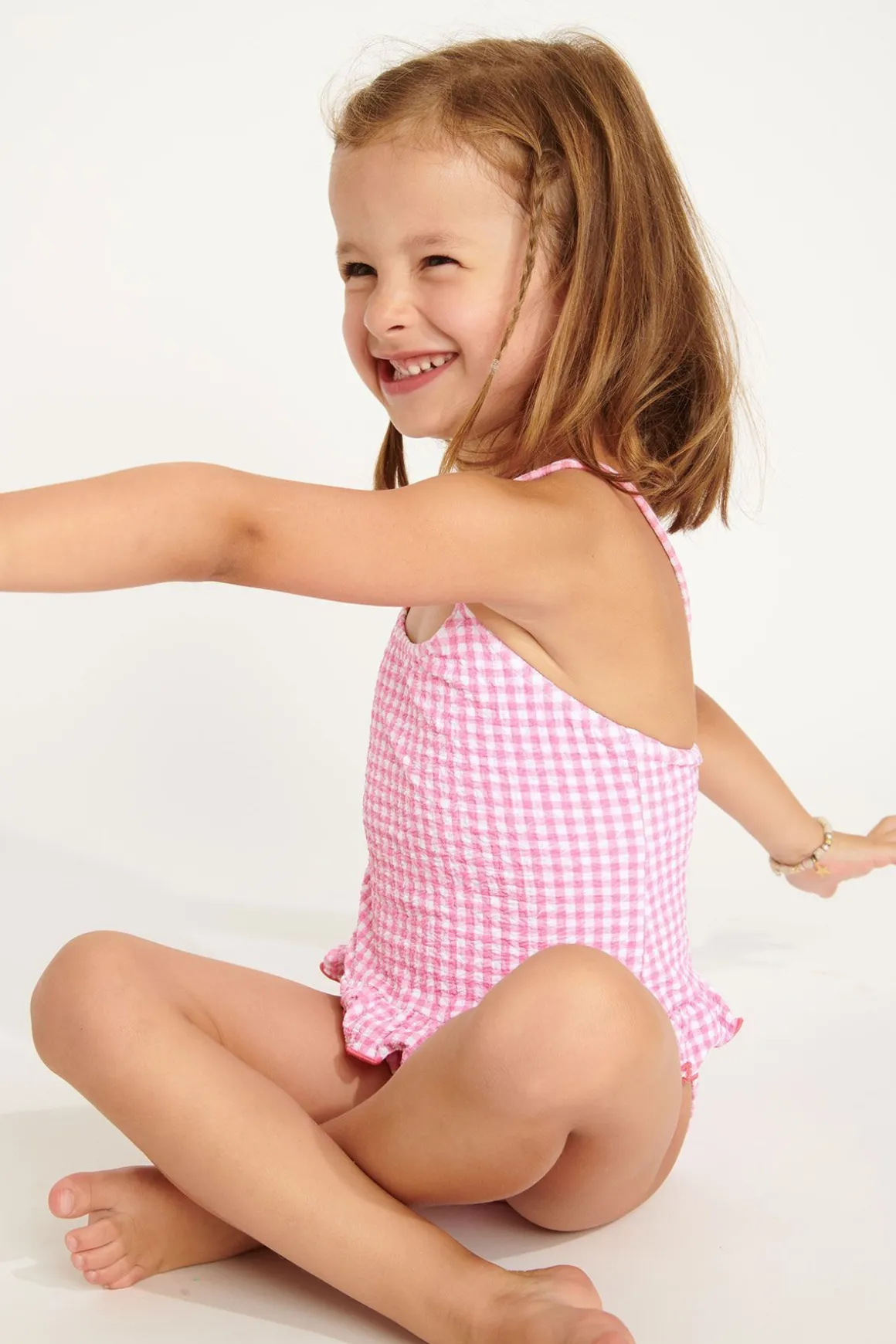 | Description | This one-piece girl’s swimsuit is perfect for the beach: colourful and Retro, it adds a vintage touch. We love the ruffle details on the bottom! |