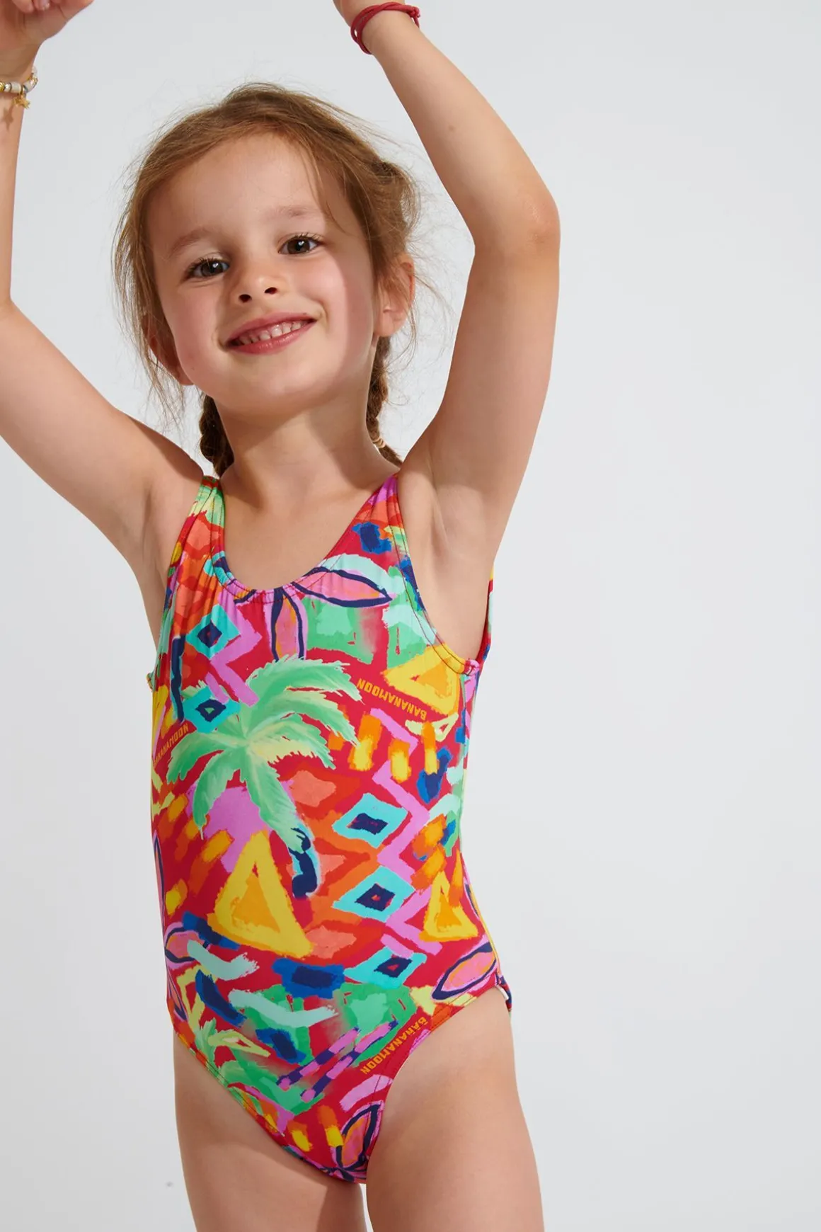 | Details | • One-piece swimsuit for girls • Backless • Multicolored print |