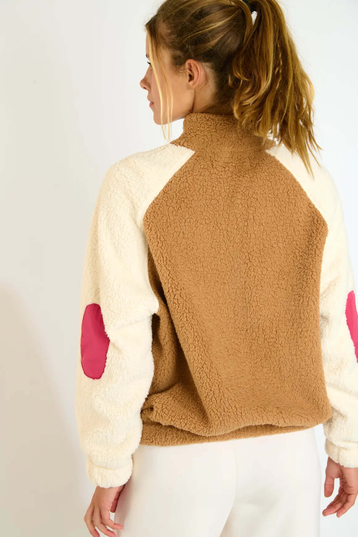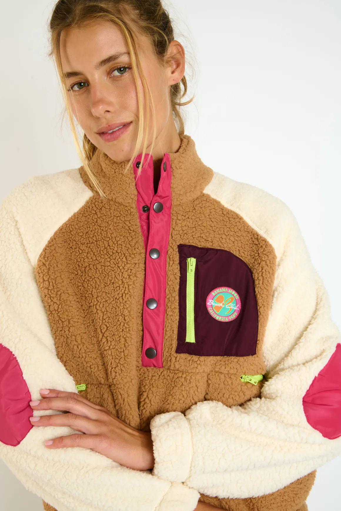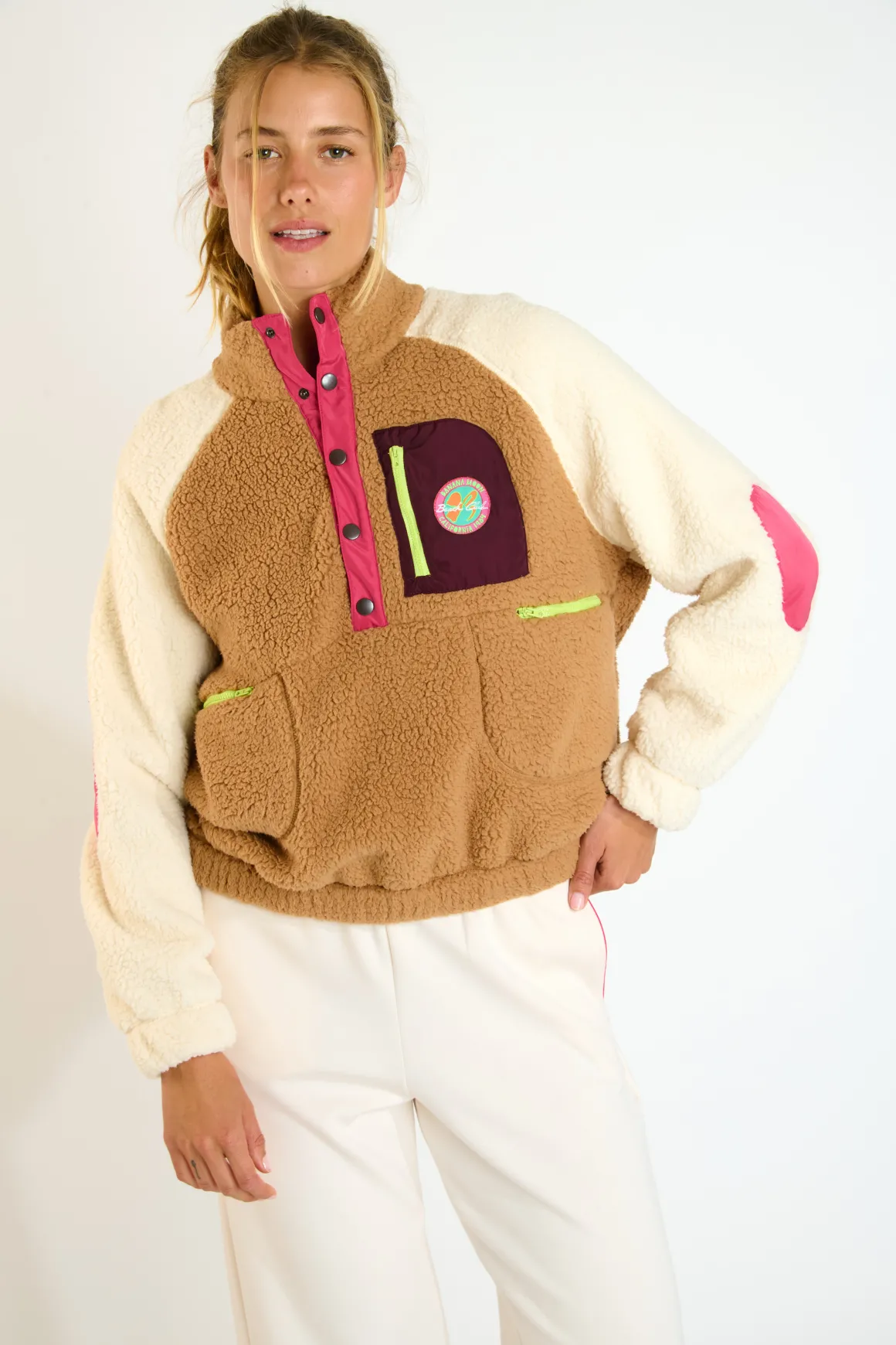 | Description | BREW SKIWAX Camel Fleece with Nylon Accents. Discover our sherpa fleece, perfect for keeping you warm after hitting the slopes. With a retro look and flashes of bright pink and yellow, this sweatshirt will become your essential piece for the season. |