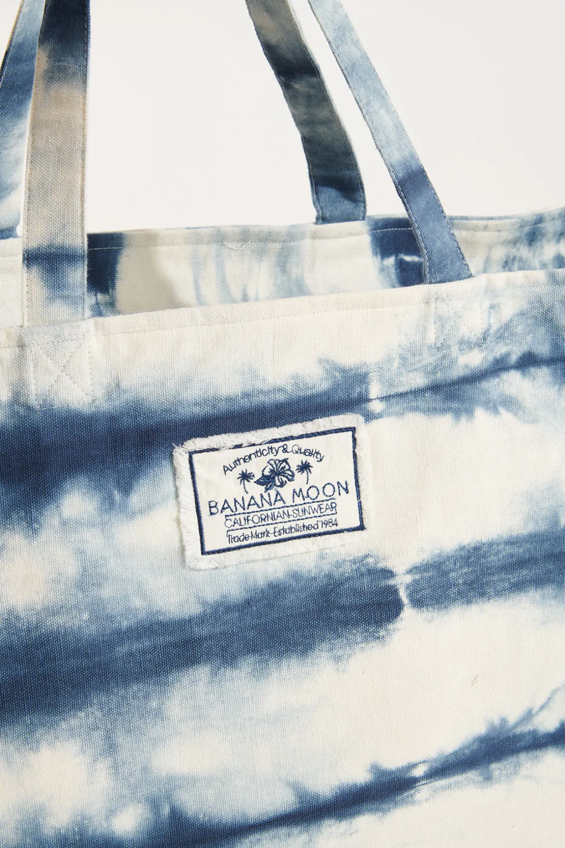 | Details | • Tote bag • Blue tie-dye • Zipper closure • Inside pockets • “Banana Moon” logo • Dimensions: 46 cm x 35 cm (18.11 × 13.78 inches) |